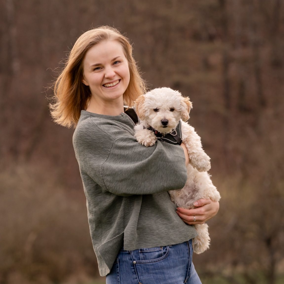 Stolze Hundemama des Maltipoos Frodo aus dem Tierheim Wetterau e.V.